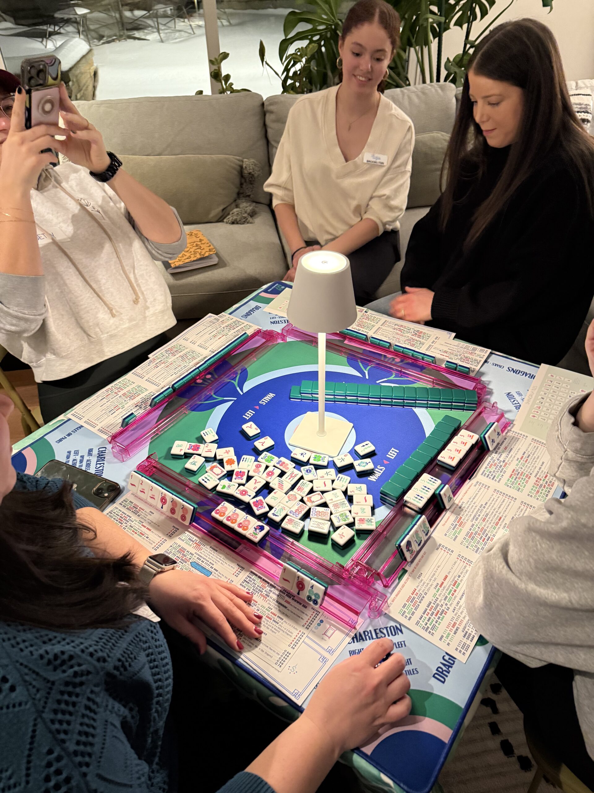 The Mahjong Mingle is built on approachability, confidence and fun. We teach in a welcoming, confidence-building style that helps brand-new players feel comfortable, while making returning players feel right at home. Every lesson, event and gathering is designed to be stylish, warm and joy-filled. We celebrate connection just as much as the game itself.